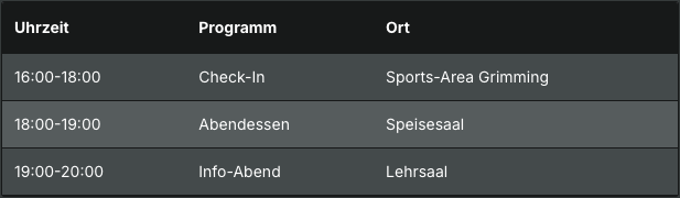Starten werden wir am Mi. 13.05.2026 um 18:00 Uhr mit einem Welcome-Vortrag und danach gemeinsamen Abendessen. Enden wird das Camp am So. 17.05.2026 nach dem Mittagessen.